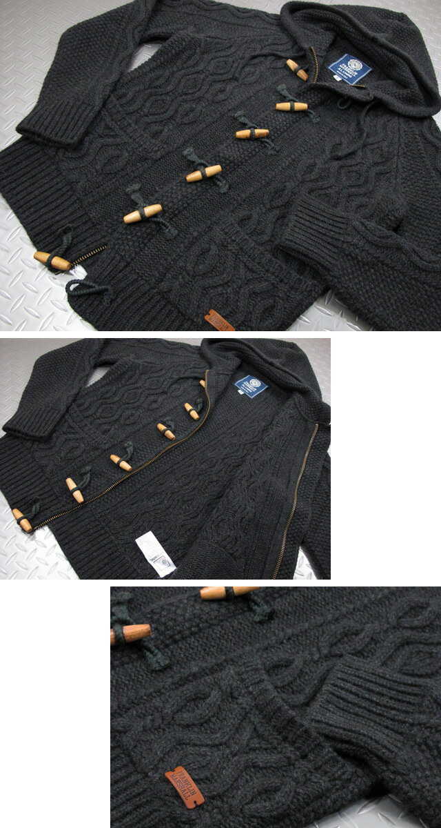 【SALE】30%OFF★FRANKLIN&MARSHALL/フランクリンマーシャルKNITWEAR WOOL ZIP+HOOD LONGフロントジップ&トグル・フード付き、フィッシャーマンニットカーディガン/フード付きケーブル編み、ニットカーディガン BLACK MELANGE(ブラックメランジ)/KNMR141W13
