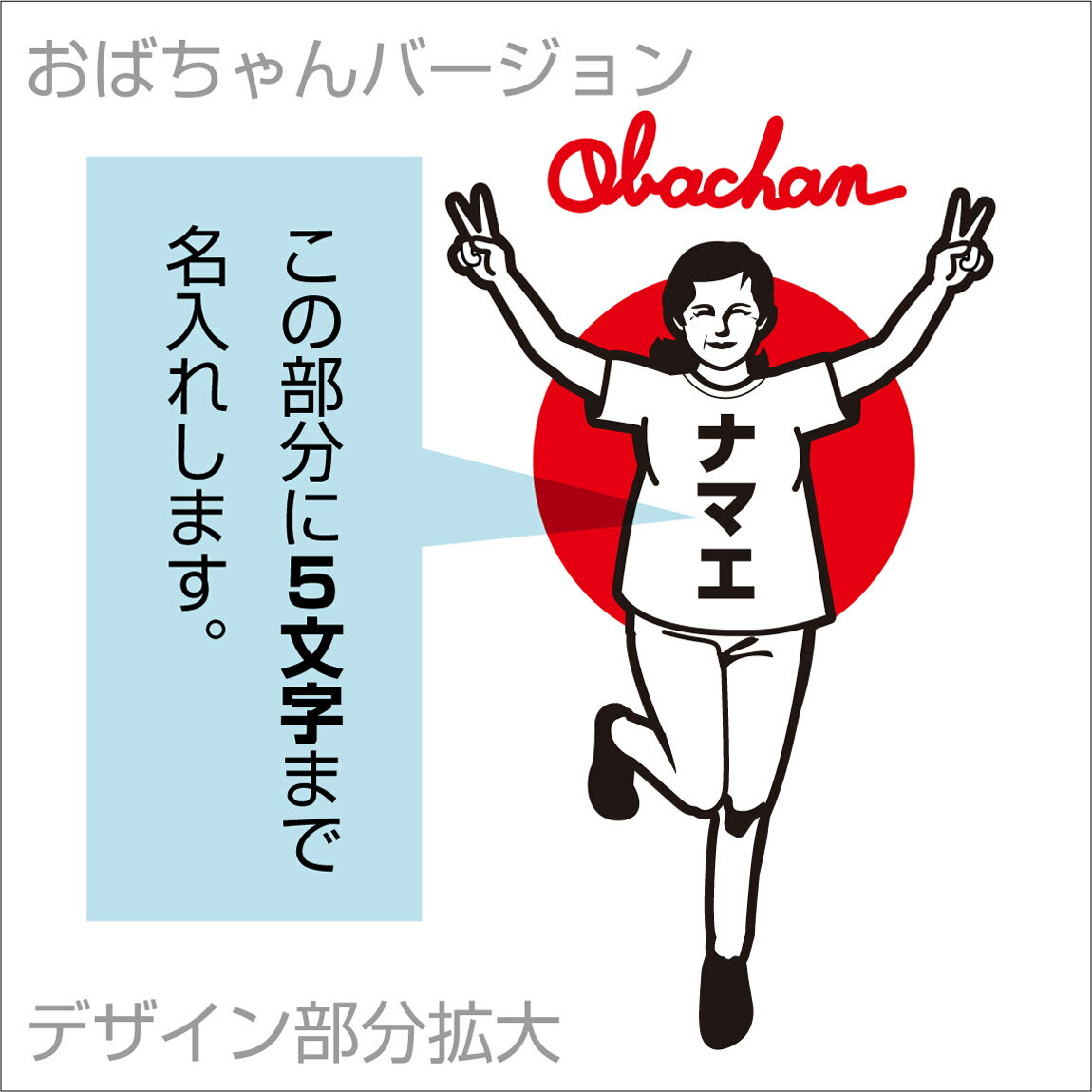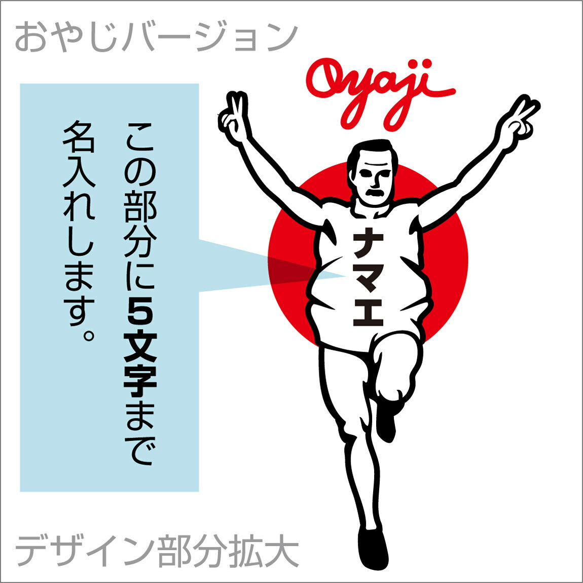 お父さん・お母さん・おじいいちゃん・おばあちゃん・上司などの誕生日プレゼントに! ■名入れします! 【ナマエ】と書いてある文字部分にお好きな文字5文字まで名入れします! オススメはランナーっぽくなるのでカタカナ3文字です(笑) ■デザインは[おやじ]と[おばちゃん]の2パターンございますので、カートにある項目選択肢でどちらか選択してください。